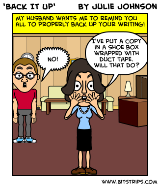 I have now saved all my blog posts, as well as my comics, as well as my novel, on 2 additional computers plus an external hard drive plus an on-line storage system (such as Carbonite).