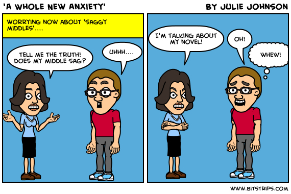 Something needs to break it up a little…I don’t want my middle to sag! (As was recently discussed in #scribechat, this is an affliction which many otherwise decent novels suffer from: its the lull that sometimes happens in a story after you’ve gotten past your initial conflictual introductions.)