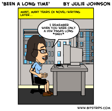 I have no idea why it has taken me this long. Other writers fly through their novels in a year or so–or, if they are doing ‘nanowrimo’, one month!